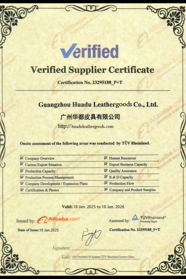 Backed by our parent company Huadu Leather Goods (established in 2001) with: